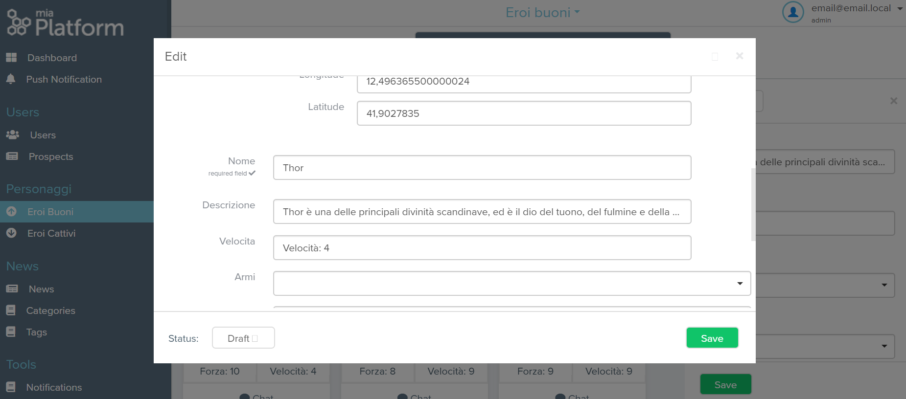 defaultStatus | draft | it can instead be either draft or publish. If you write draft once you upload an item it will not be published automatically on your applications, but you will have to give it the public command later. If you write publish instead whenever you edit or load an item it will be published automatically. In our case we will put draft. |