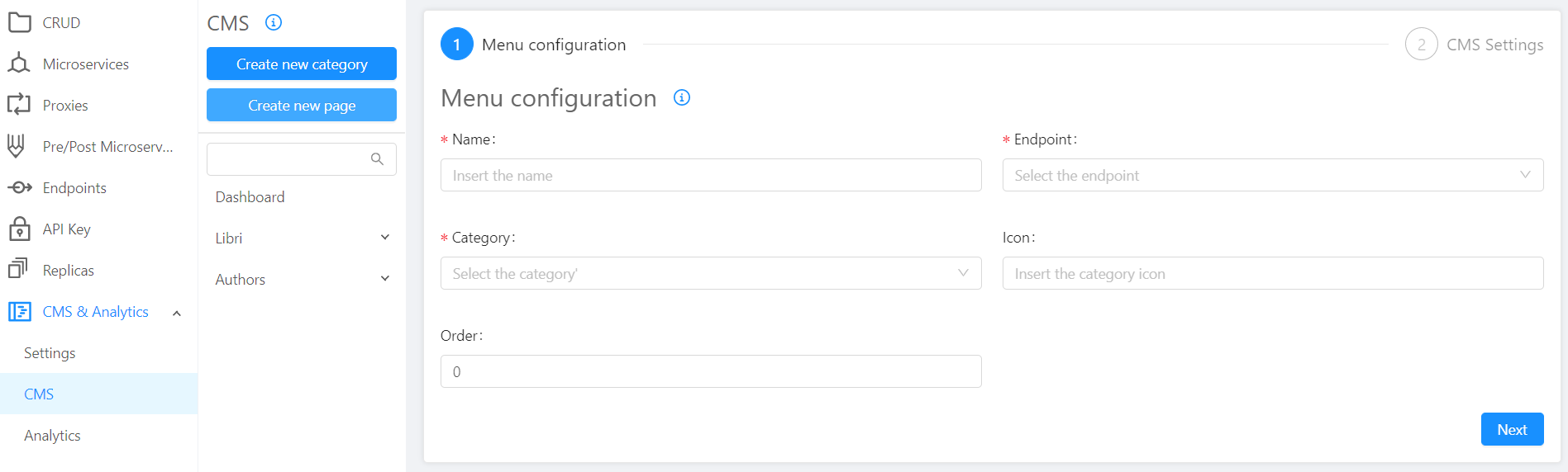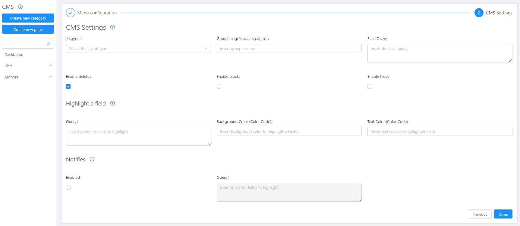Remember that before you can configure the CMS you must have already created your collections in the Collections area and displayed the related Endpoints.