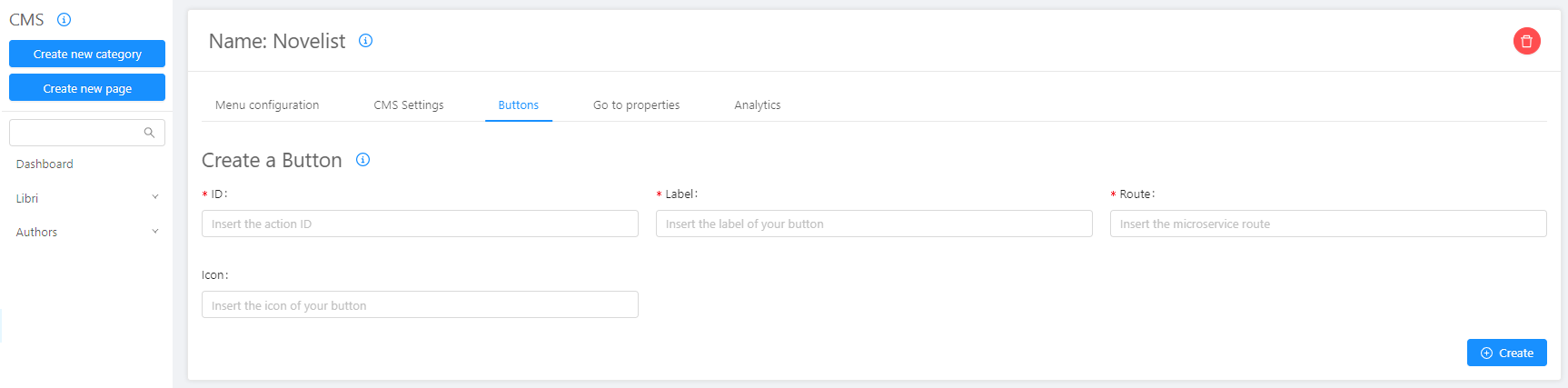 Once you created the button on the CMS, you have to configure the Advanced Configurations of your project, otherwise the CMS will not find the created route.