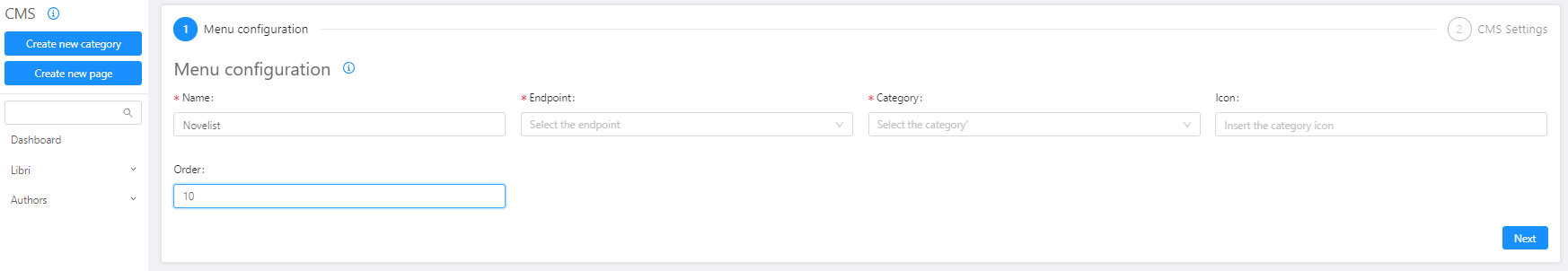 In our case, we added a Category for the writers: Name = Authors and it will be placed second with the Order = 20
