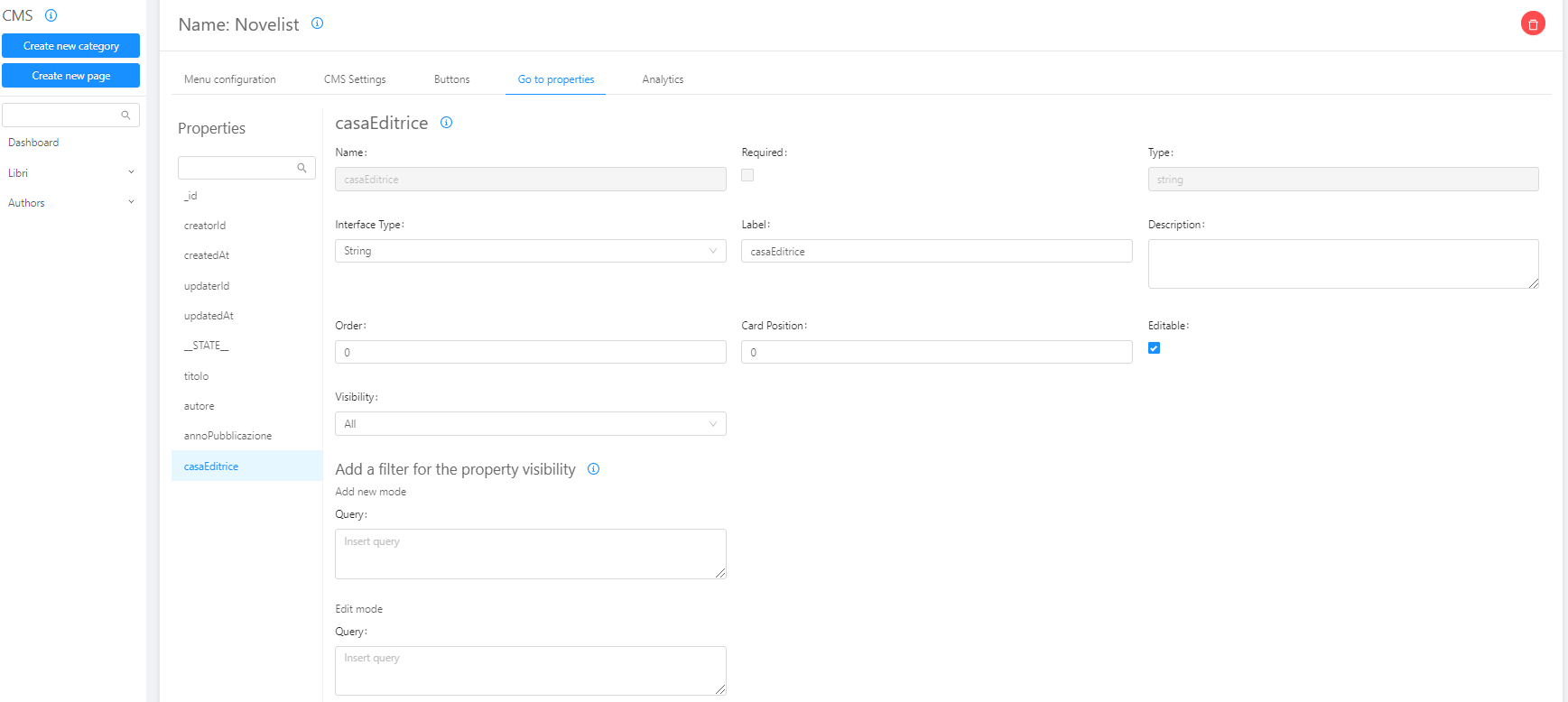 For each property you can configure different fields that allow you to improve the user experience in the CMS: