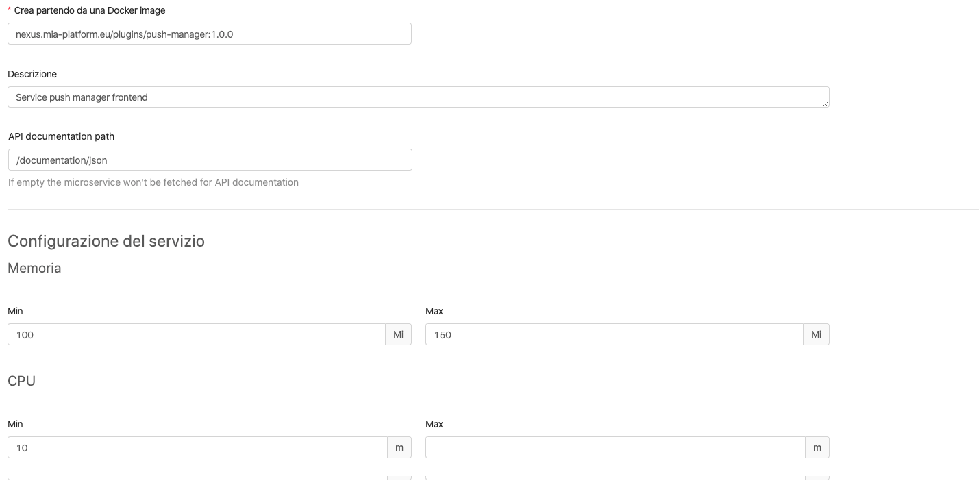 You also need to add the microservice of the frontends that you want to integrate into the CMS; note that the microservice must be already Dockerized.